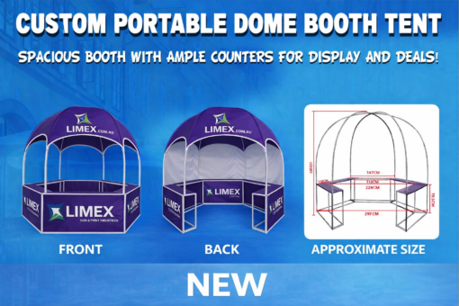 The NEW 10FT Exhibition Outdoor Full-Color Printing Dome Booth Tent is a professional and reliable solution for outdoor promotions, exhibitions, trade shows, and marketing events. Featuring vibrant full-color printing, this dome booth tent helps your brand stand out and attract attention from every angle. Built with a high-quality, reinforced frame, it ensures excellent stability and durability, even in windy outdoor conditions. The spacious 10FT design provides enough room for displays, products, and customer interaction while remaining easy to transport and assemble.