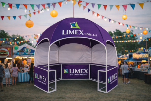 This tent is an ideal promotional tool for businesses looking to maximize exposure and create a strong visual impact at outdoor events.