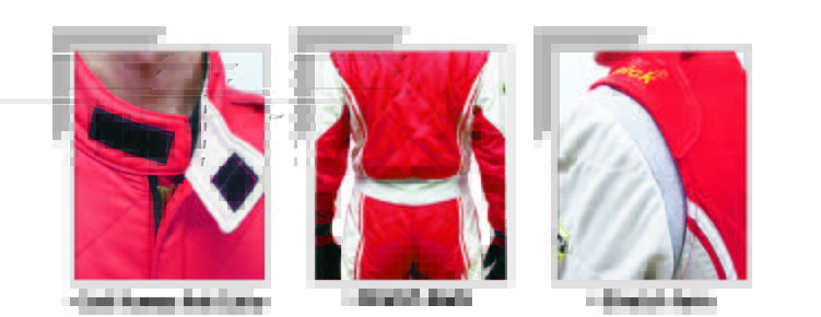 Soft Collar from Knit Nomex. Close fitting suit with adjustable belted waist. Full floating arm constructed with knit fabric for freedom of movement.